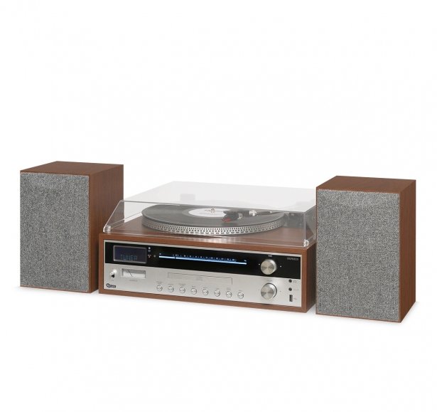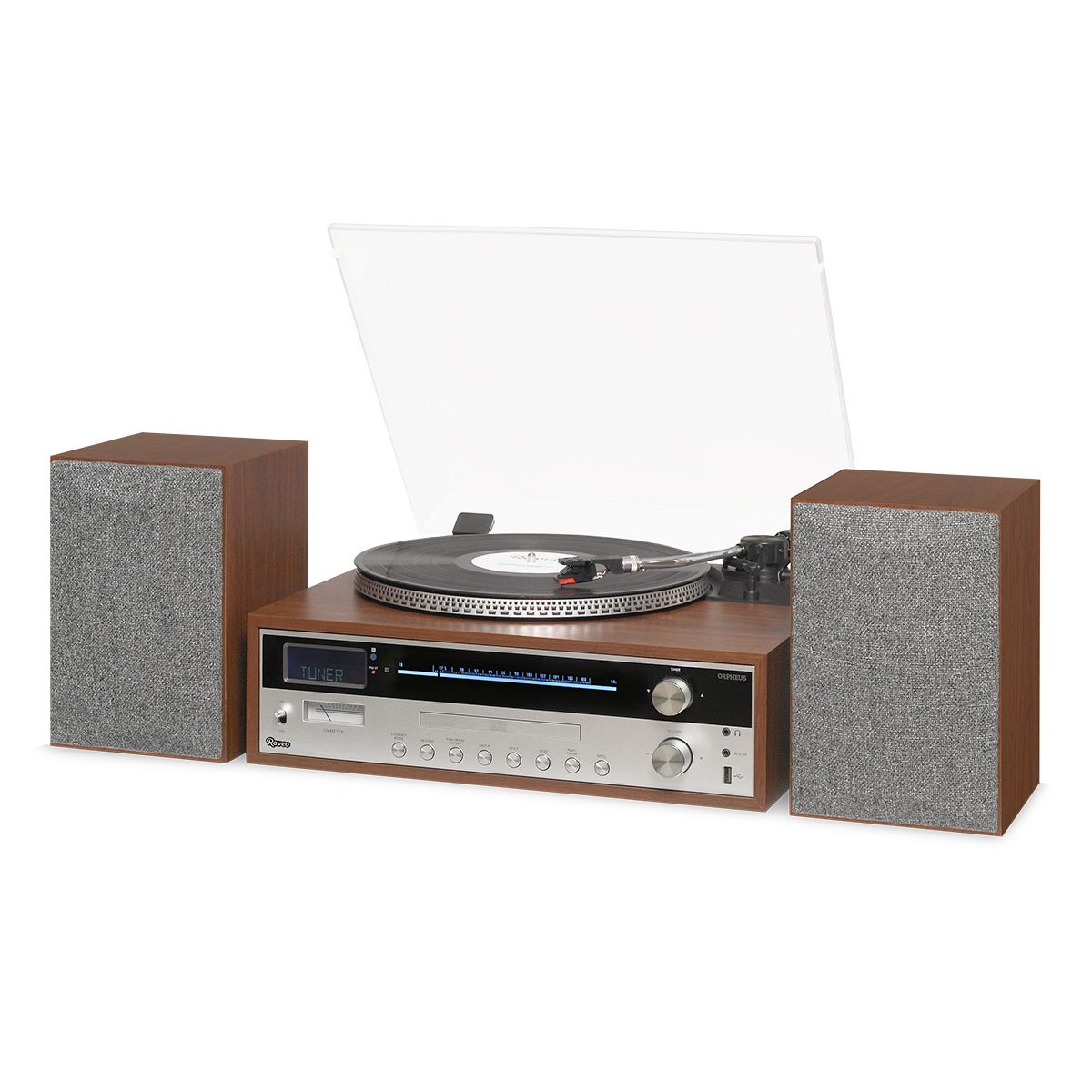 A vitrola Raveo Orpheus permite que você curta suas músicas de diversas formas: Toca-discos, Rádio FM, CD, CD-R, USB, entrada e saída auxiliares e a inovadora tecnologia de conexão Bluetooth com NFC, além de possuir um par de caixas acústicas que aproveitam melhor a potência de 60W.